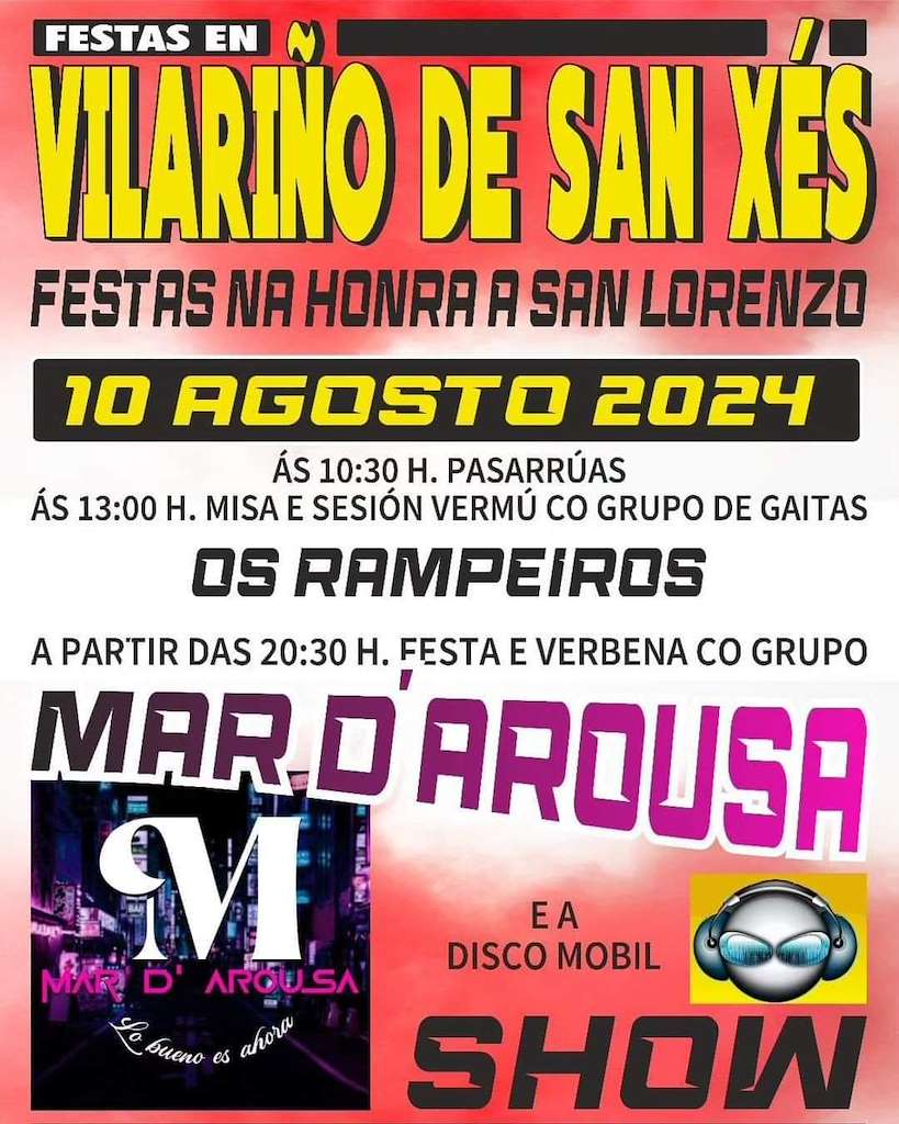 A festa relixiosa na honra de San Lourenzo terá lugar na parroquia de Vilariño de San Xés, pertencente ao concello de Lobeira. Domingo